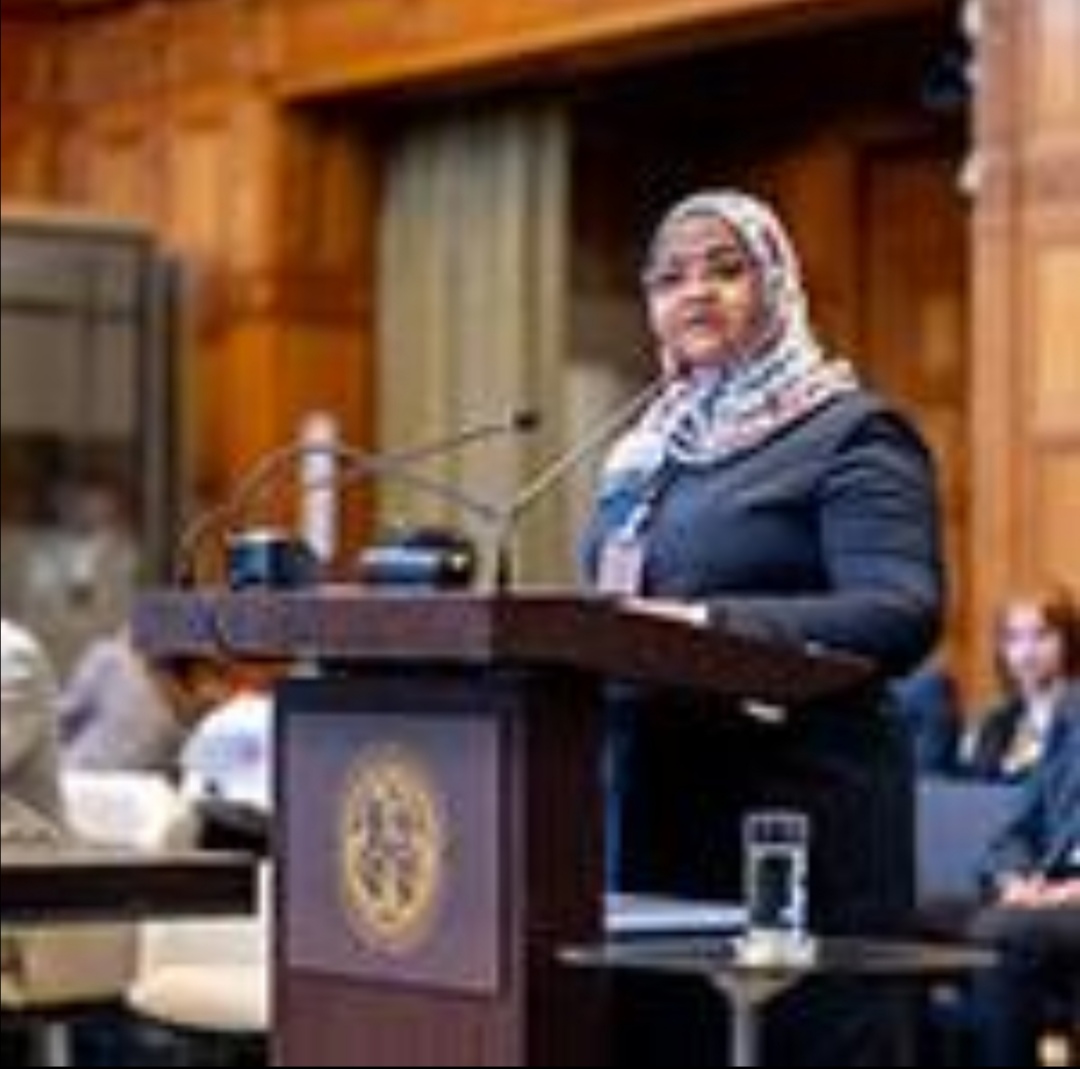 وقد ألقت المرافعة السفيرة أميمة الشريف القائم بالأعمال بالإنابة، ممثلة السودان لدى المحكمة، و أكّدت في مستهلّ حديثها التزام السودان الثابت بمبادئ ميثاق الأمم المتحدة، وعلى رأسها الرفض القاطع للاستيلاء على الأراضي بالقوة، مشيرة إلى أن الإجراءات التي اتخذتها إسرائيل بحق وكالة الأمم المتحدة لإغاثة وتشغيل اللاجئين الفلسطينيين (الأونروا) تمثّل انتهاكًا خطيرًا للقانون الدولي وتُقوّض النظام القانوني الذي يحكم عمل المنظمات الدولية.