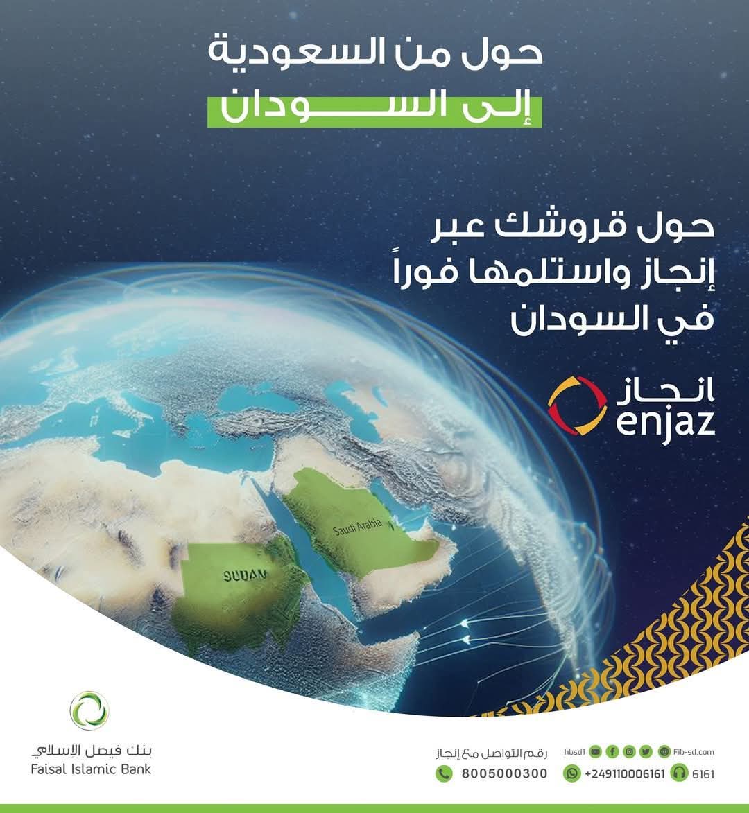 تسهيل جديد لتحويل الأموال من السعودية إلى السودان عبر “إنجاز” و”بنك فيصل الإسلامي”