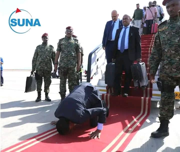 بالصور .. كامل إدريس يسجد بعد وصوله بورتسودان