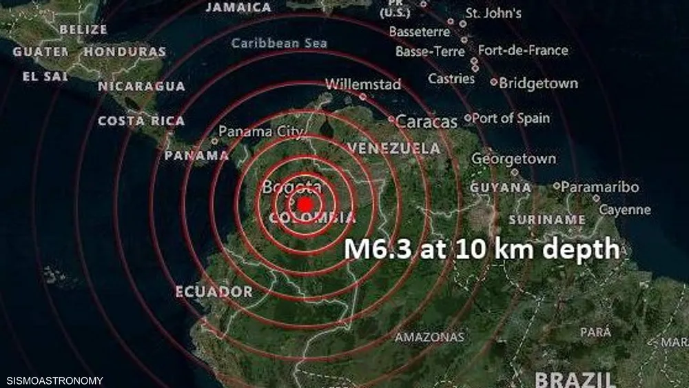 ضرب زلزال قوي بلغت شدته 6,3 درجات العاصمة الكولومبية في وقت مبكر الأحد بحسب التوقيت المحلي، بحسب ما أفاد المعهد الجيولوجي الأميركي لرصد الزلازل.