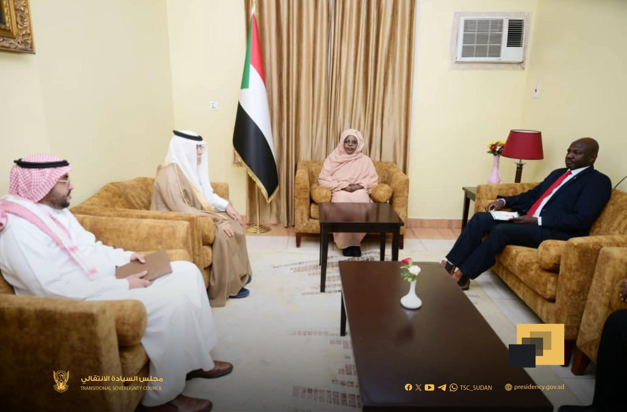 من جهته، قدم السفير السعودي تهانيه لعضوة مجلس السيادة بمناسبة حلول عيد الأضحى المبارك، وبالثقة التي حظيت بها باختيارها عضوًا في مجلس السيادة الانتقالي. وأشار إلى أن اللقاء تناول سبل تعزيز التعاون الثنائي بما يخدم مصالح الشعبين الشقيقين.