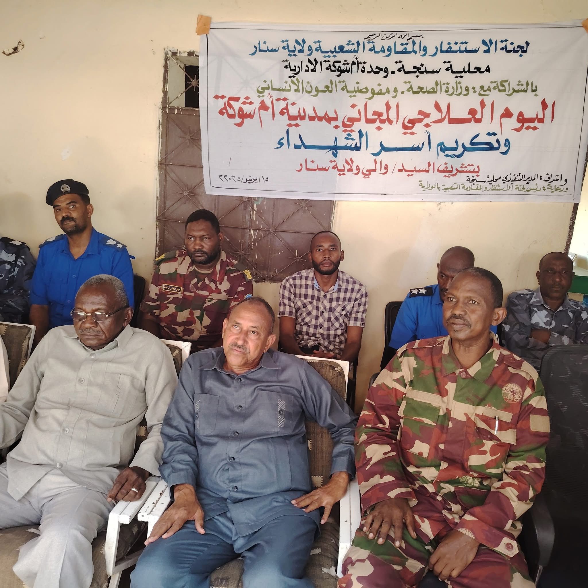 متابعات _ النورس نيوز_ شهدت منطقة أم شوكة بمحلية سنجة في ولاية سنار تنظيم يوم علاجي مجاني، إلى جانب توزيع سلال غذائية مخصصة لأسر الشهداء، وذلك بمبادرة مشتركة بين وزارة الصحة والتنمية الاجتماعية ومفوضية العون الإنساني والمقاومة الشعبية بالولاية، وبحضور قيادات تنفيذية وأمنية.
