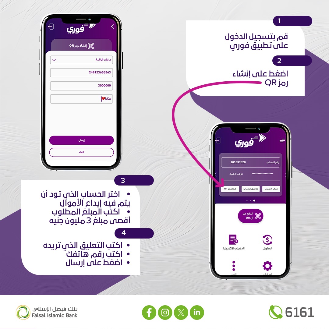 ويتيح البنك هذه الخدمة عبر ثلاث وسائل: من خلال تطبيق “فوري”، أو بمسح الرمز QR الموجود في إعلان الخدمة، أو عبر الرابط المباشر على موقع البنك: