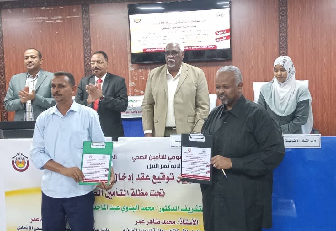 وقعت الشركة السودانية للموارد المعدنية المحدودة والصندوق القومي للتأمين الصحي عقدًا يهدف إلى إدخال 2000 أسرة تحت مظلة التأمين الصحي في ولاية نهر النيل. تم توقيع العقد برعاية المدير العام للشركة، محمد طاهر عمر، وإشراف مدير مكتب الشركة بالولاية، معتز حاج نور محمد. وقع الاتفاق عن الشركة مدير مكتب الولاية، وعن التأمين الصحي مدير الفرع بالولاية، أسامة الهادي.