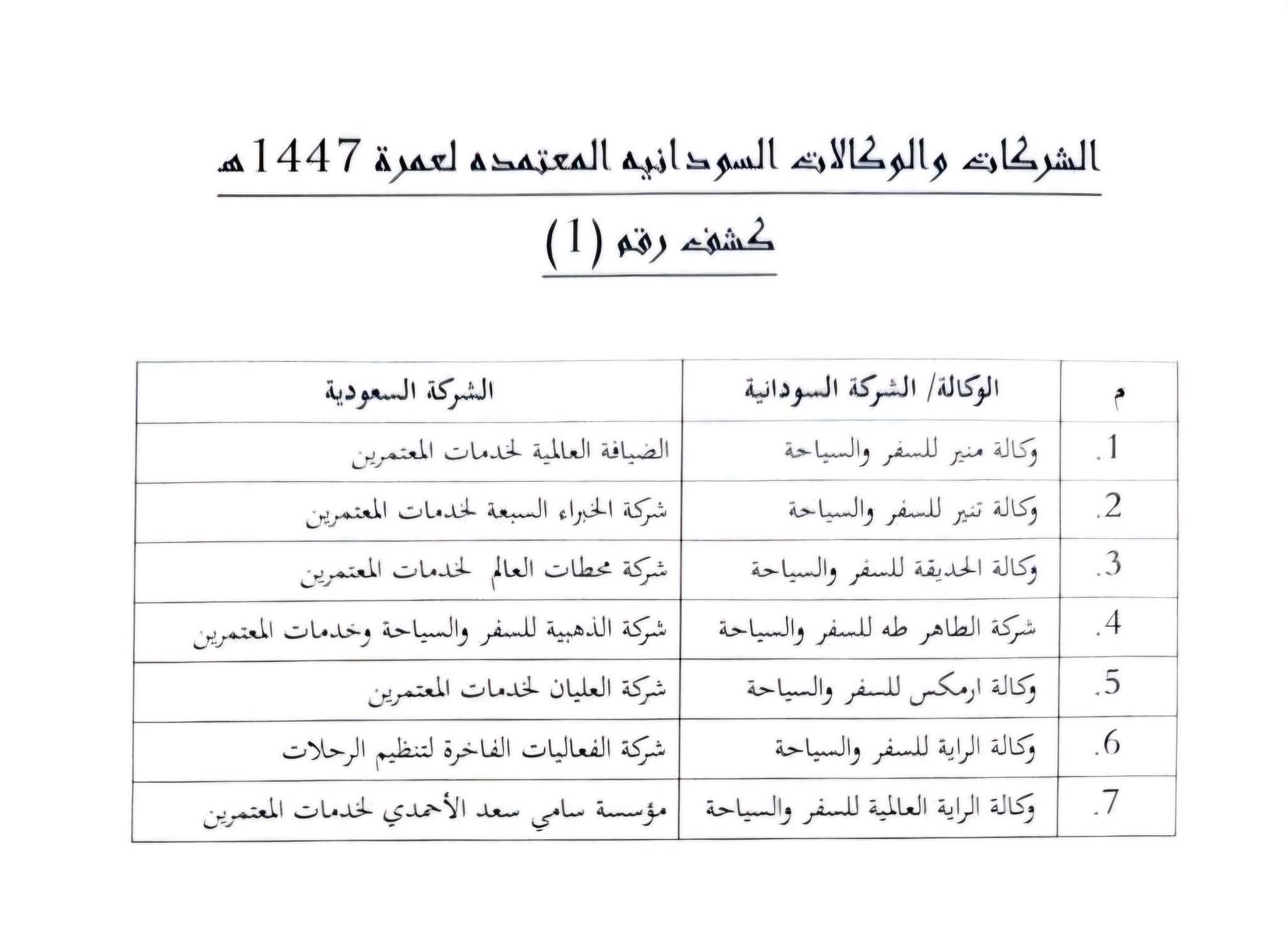 اعتماد 7 شركات سودانية للعمل في عمرة 1447هـ