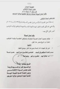 ويأتي القرار استنادًا إلى الفقرة (2) من قرار مجلس السيادة رقم (153) لسنة 2025، والمتعلق بتشكيل اللجنة العليا لتهيئة البيئة المناسبة لعودة المواطنين إلى ولاية الخرطوم. ويهدف هذا التوقيف المؤقت لأعمال الصيانة إلى مراجعة الإجراءات والتهيئة الميدانية بما يتناسب مع خطة عودة السكان تدريجيًا إلى مناطقهم الأصلية بعد فترات طويلة من النزوح نتيجة النزاع المسلح.