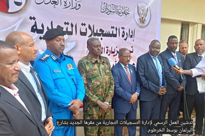 في مشهد يعكس إرادة الدولة لعودة الحياة المؤسسية للعاصمة السودانية، دشّن وزير العدل السوداني مولانا د. عبدالله محمد درف، ووالي ولاية الخرطوم الأستاذ أحمد عثمان حمزة، العمل الرسمي لإدارة التسجيلات التجارية من مقرها الجديد بشارع البرلمان بوسط الخرطوم.