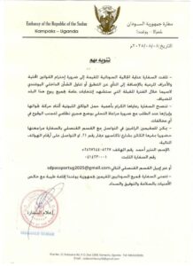وأكدت السفارة تمنياتها لكافة السودانيين في أوغندا بإقامة طيبة وآمنة، مع خالص الأمنيات بالسلامة والتوفيق.
