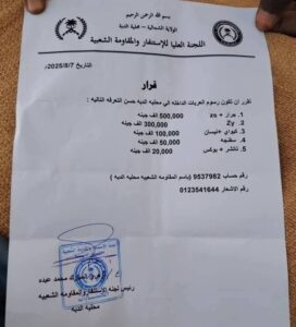 وأشار القرار إلى أن الرسوم يتم توريدها في حساب باسم المقاومة الشعبية بمحلية الدبة، موضحًا رقم الحساب ورقم الاتصال للاستفسار.