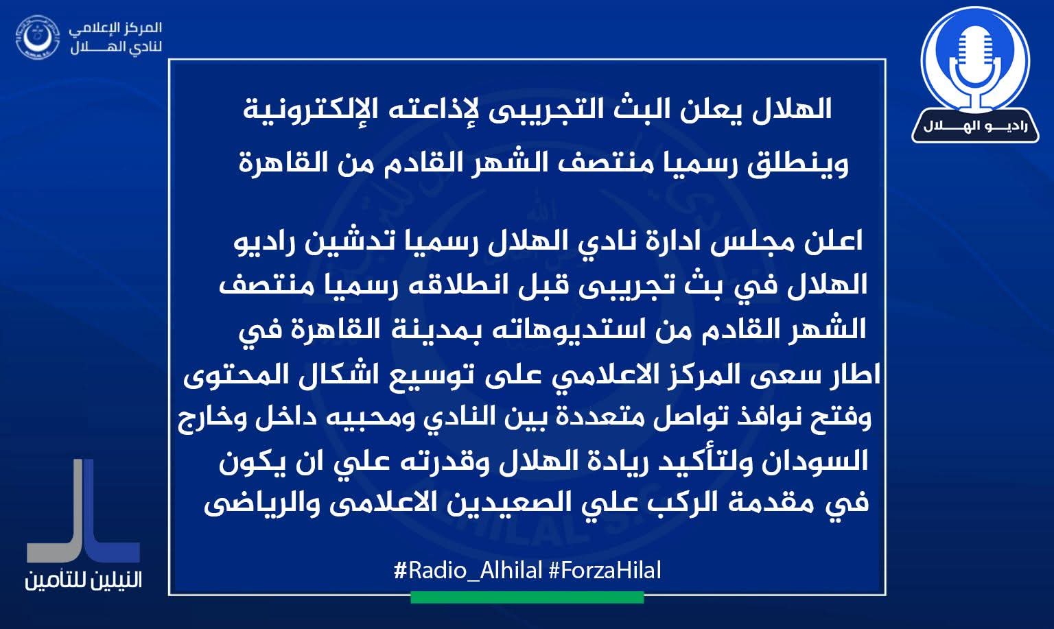 الهلال السوداني يعلن البث التجريبي لإذاعته الإلكترونية في هذا التوقيت