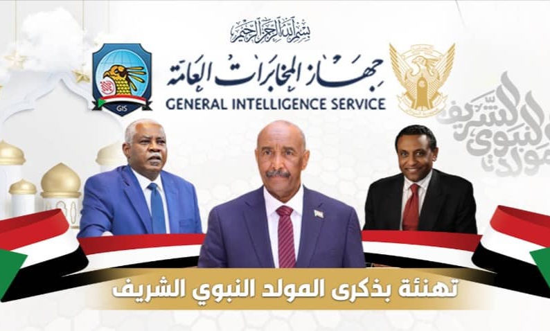 بعث جهاز المخابرات العامة بتهنئة رسمية بمناسبة ذكرى المولد النبوي الشريف، تقدّم بها المدير العام للجهاز الفريق أول أحمد إبراهيم علي مفضل، ونائباه الفريق الركن محمد عباس اللبيب والفريق عباس محمد بخيت، إلى رئيس مجلس السيادة القائد العام للقوات المسلحة الفريق أول ركن عبدالفتاح البرهان عبدالرحمن، ونائبه الفريق مالك عقار إير، وأعضاء مجلس السيادة، إضافة إلى رئيس الوزراء الدكتور كامل الطيب إدريس وأعضاء حكومته، وقادة الأجهزة النظامية، وإلى جماهير الشعب السوداني كافة.