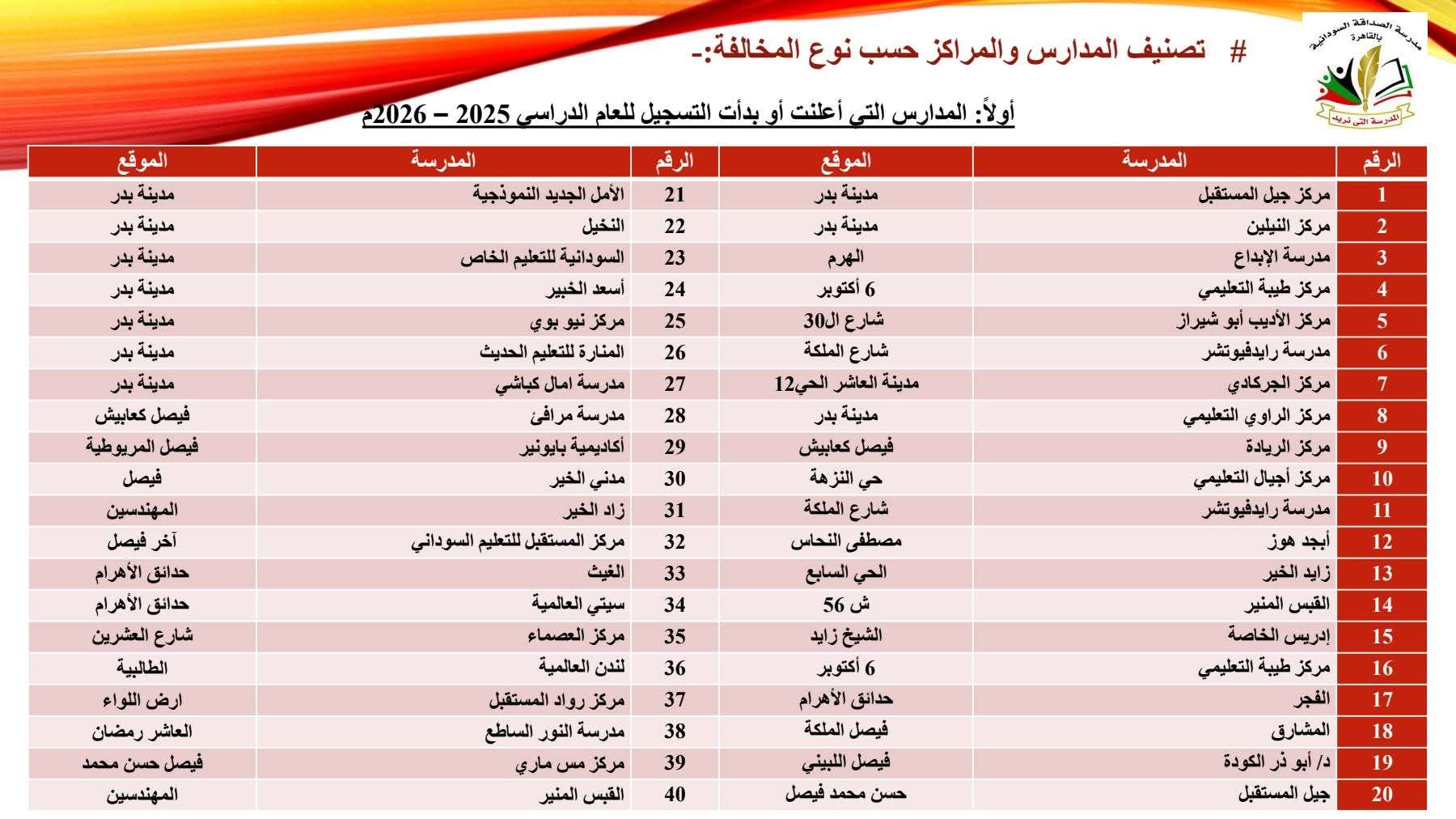 1️⃣ مدارس ومراكز محرمة نهائيًا: لا يسمح لها بتدريس المنهج السوداني إطلاقًا، وتشمل تلك التي تقدم نشاطًا مثل العام المبكر، العام الممتد، الكورس الأكاديمي، أو قامت بطباعة الكتب المدرسية دون الرجوع إلى مدرسة الصداقة.
