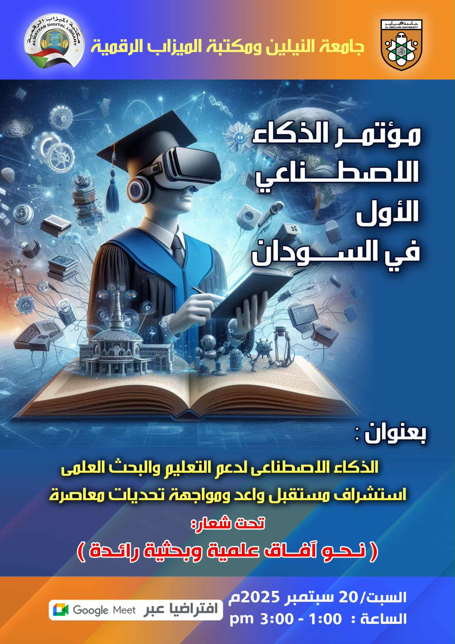 الخرطوم – 20 سبتمبر 2025 – النورس نيوز – نظمت جامعة النيلين بالتعاون مع مكتبة الميزاب الرقمية المؤتمر الأول للذكاء الاصطناعي في السودان، تحت عنوان “الذكاء الاصطناعي لدعم التعليم والبحث العلمي: استشراق مستقبل واعد ومواجهة تحديات معاصرة”، وبشعار “نحو آفاق عملية وبحثية رائدة“.
