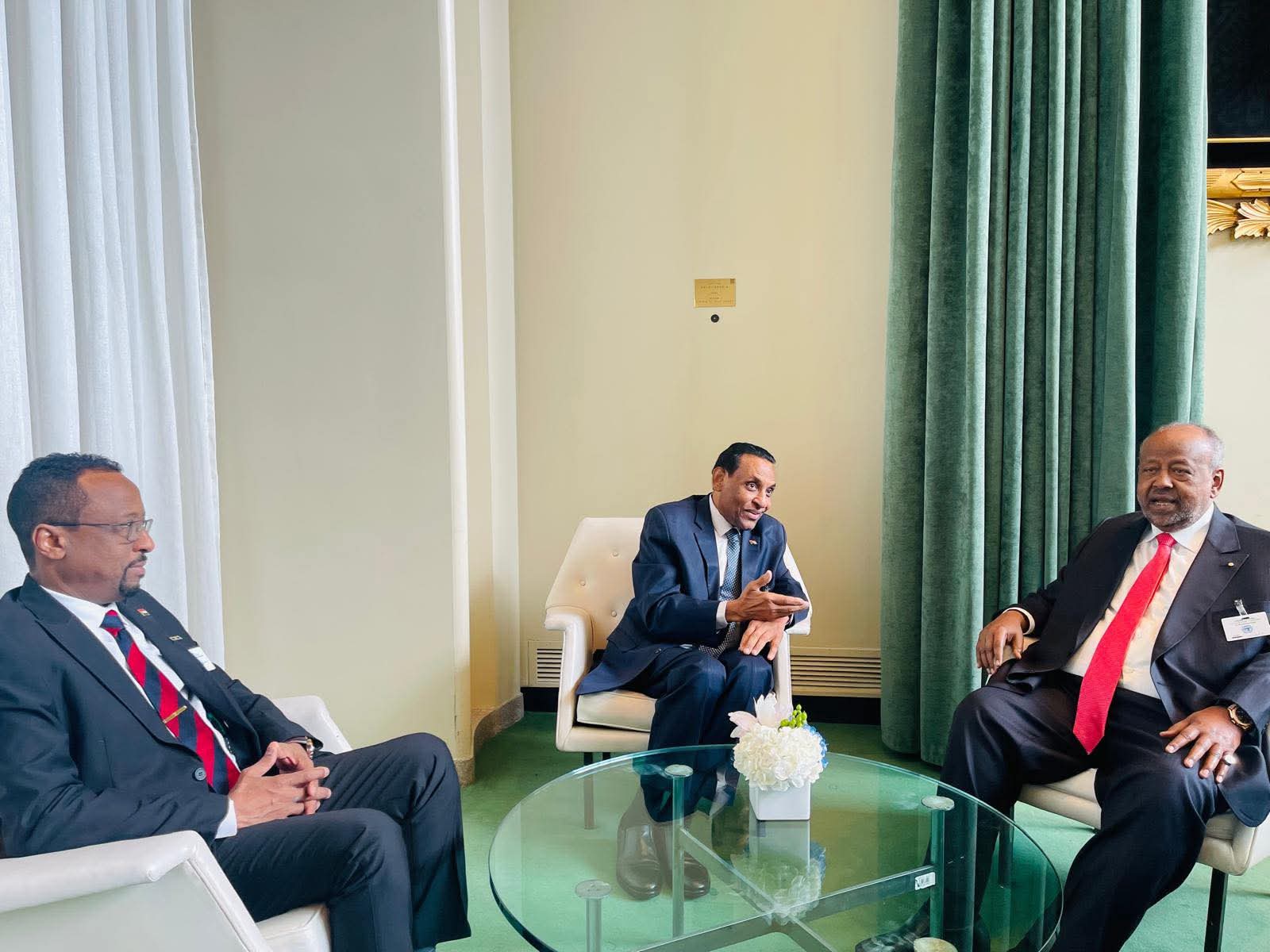 نيويورك – النورس نيوز – التقى رئيس الوزراء السوداني الدكتور كامل إدريس، على هامش أعمال الدورة الثمانين للجمعية العامة للأمم المتحدة، الرئيس إسماعيل عمر قيلي، رئيس جيبوتي، بحضور وزير الثقافة والإعلام والسياحة السوداني خالد الإعيسر، ووزير خارجية جيبوتي عبد القادر حسين عمر.