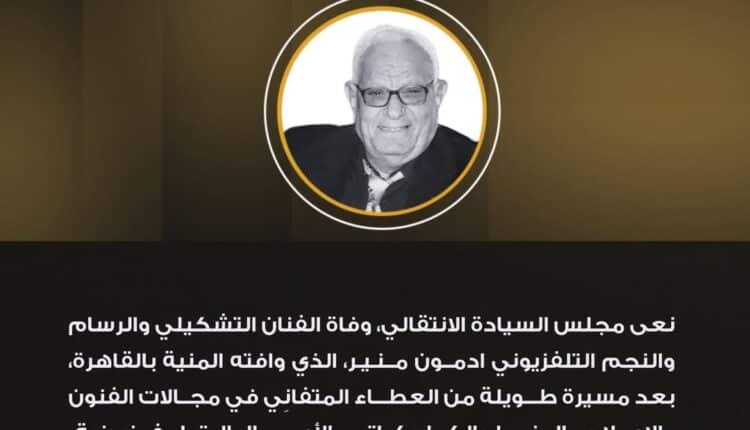 أصدر مجلس السيادة الانتقالي بيانًا نعى فيه ببالغ الحزن والأسى رحيل الفنان التشكيلي والرسام والإعلامي المعروف آدمون منير، الذي توفي اليوم في العاصمة المصرية القاهرة بعد مشوار طويل ومثمر في خدمة الفنون والثقافة والإعلام.