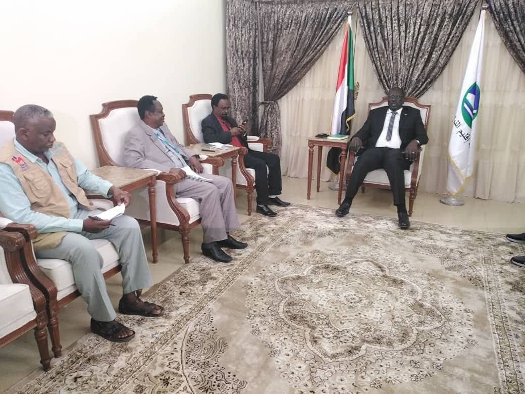 جاء ذلك خلال لقائه بمكتبه اليوم الأستاذ جمال ناصر السيد، وزير الصحة، يرافقه الدكتور مصطفى جبرالله المدير العام للوزارة، والدكتور خالد موسى مدير منظمة اليونيسف بالإقليم، والأستاذ يس عبدالحميد مدير منظمة بانكير، بحضور الأستاذ ميرغني مكي ميرغني، الأمين العام للحكومة.
