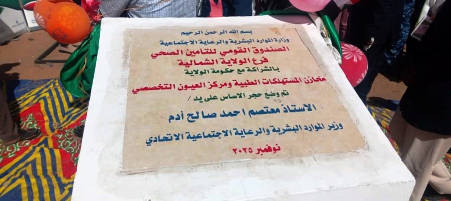 ووضع الوزير بمدينة دنقلا اليوم، حجر الأساس لمخزن التأمين الصحي الرئيس للإمداد الطبي بالولاية ومجمع طبي متكامل برفقة والي الولاية الشمالية الفريق ركن عبد الرحمن عبد الحميد وعدد من المسؤولين، مؤكداً وقوف وزارة الموارد البشرية والرعاية الاجتماعية ودعمها لبرامج ومشاريع الصندوق القومي للتأمين الصحي.