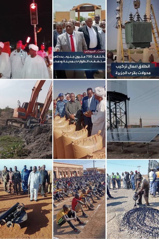 أعلنت حكومة الولاية رصف ٣٠ كيلومترا من طرق مدينة مدني، إلى جانب توقيع عقد مع شركة زادنا العالمية لتأهيل ٢٠ كلم إضافية بكلفة 24 مليار حنيه.