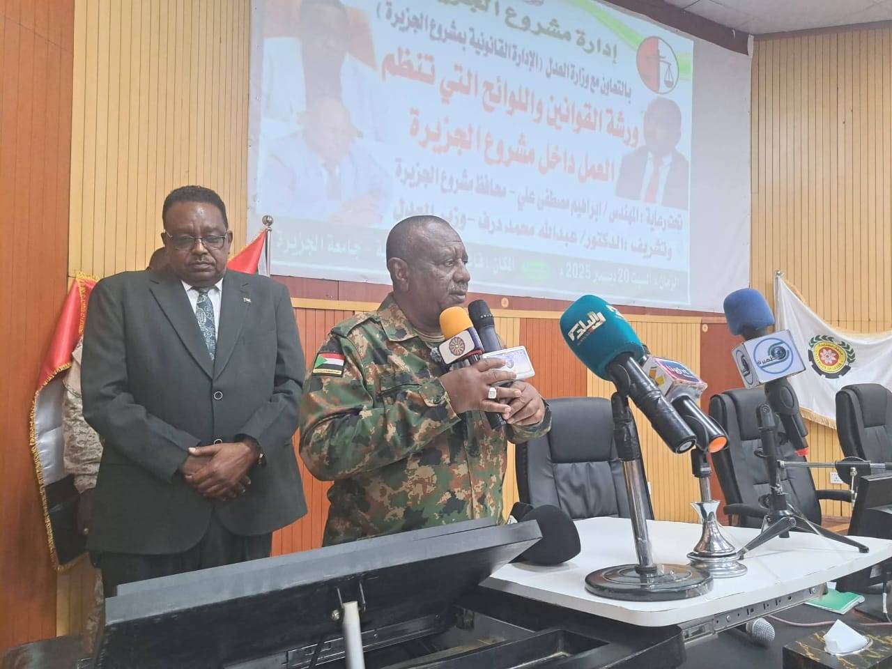 وشدد والي ولاية الجزيرة الطاهر إبراهيم الخير لدى مخاطبته الجلسة الافتتاحية للورشة، على ضرورة الخروج بتوصيات تسهم في استقرار المشروع للاضطلاع بدوره ليعود قاطرة للاقتصاد الوطني ومعالجة التدخلات التي أفقدت المشروع ممتلكاته وأصوله إضافة لتنظيم العلاقات داخل المشروع.