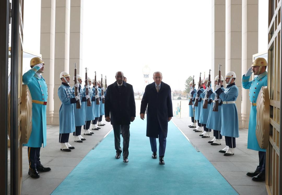 وأجرى الرئيس التركي رجب طيب أردوغان مراسم استقبال رسمية بالقصر الرئاسي في أنقرا على شرف زيارة رئيس مجلس السيادة الانتقالي لتركيا.