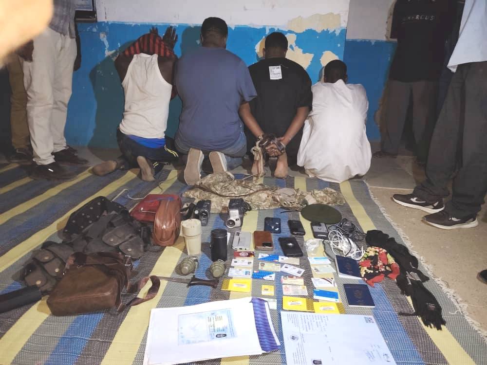 وأوضح أنه عقب ذلك تم تنفيذ عملية مداهمة نوعية واسعة النطاق بالمناطق الثلاث مثار المعلومة بحي المنارة، وحي الروضة وحي البستان بأم درمان، وأسفرت نتائج العملية الأمنية لمداهمة الموقع رقم (3) الذي يتألف من (3) طوابق عن ضبط المتهم الأول (ن، ا، ج، ع) يعمل بأحدى الدول العربية والمتهم المتهم الثاني (ه، ح، إ) وبطرفهم الطالب المختطف (ع، م، ا. م) وبحوزتهما (3) قرنيت، زي عسكري، (2) كاميرا تصوير، واقي رصاص، آلة حادة (سكين) كانت تستعمل في تهديد المجني عليه (7) هواتف، (5) فيزا كارد، وبطاقات تخص بعض المتهمين و(2) جواز سفر، حقيبة صغيرة بها ملحقات أجهزة هواتف، تم تحريزها معروضات في البلاغ .
