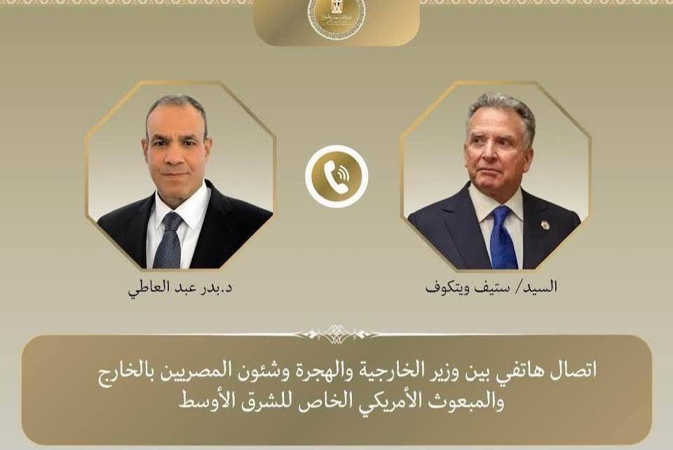 تلقى وزير الخارجية المصري الدكتور بدر عبد العاطي مساء يوم الخميس 15 يناير اتصالاً هاتفياً من السيد ستيف ويتكوف، المبعوث الأمريكي الخاص للشرق الأوسط، في إطار التنسيق والتشاور المستمر بين مصر والولايات المتحدة حول القضايا الإقليمية ذات الاهتمام المشترك.