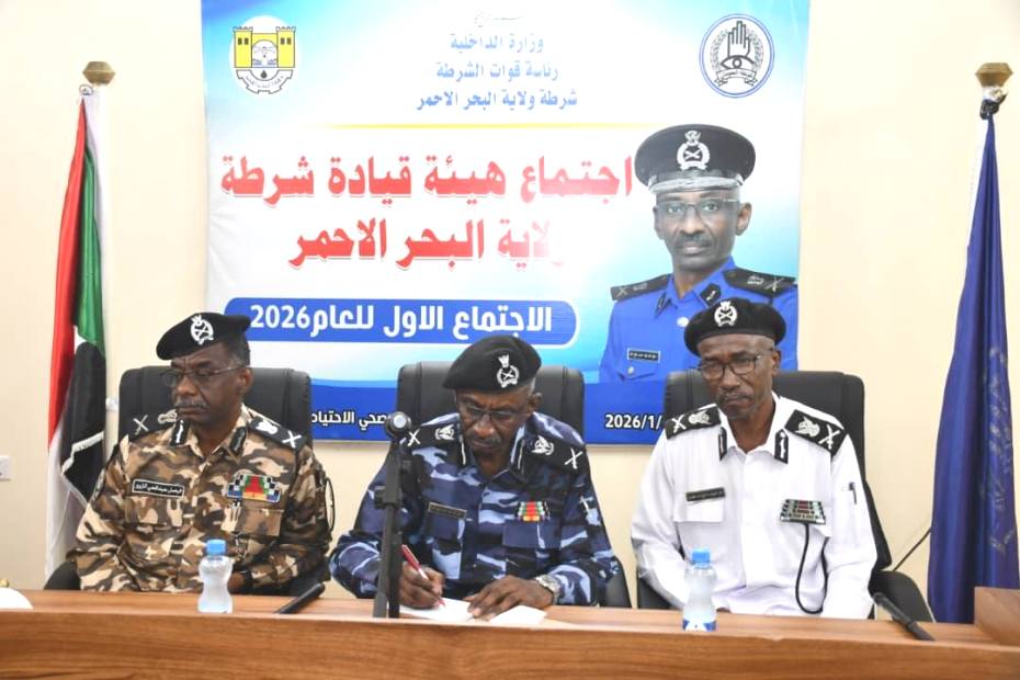 بورتسودان: النورس نيوز- تراس مدير شرطة ولاية البحر الأحمر اللواء شرطة دفع الله طه أحمد، اجتماع هيئة قيادة شرطة الولاية بحضور مديري الدوائر ومديري شرطة المحليات ومديري الإدارات العامة المختصة، وذلك في إطار الاجتماعات الدورية التي تهدف لمتابعة الأداء العام وتقييم العمل الشرطي خلال المرحلة الماضية وقد ناقش الإجتماع مجمل الأوضاع الأمنية بالولاية، ومستوى تنفيذ الخطط والبرامج الموضوعة، إلى جانب استعراض التقارير الدورية المقدمة من الإدارات المختلفة، والوقوف على التحديات التي تواجه العمل الميداني، وبحث سبل معالجتها بما يعزز من فاعلية الأداء الشرطي.