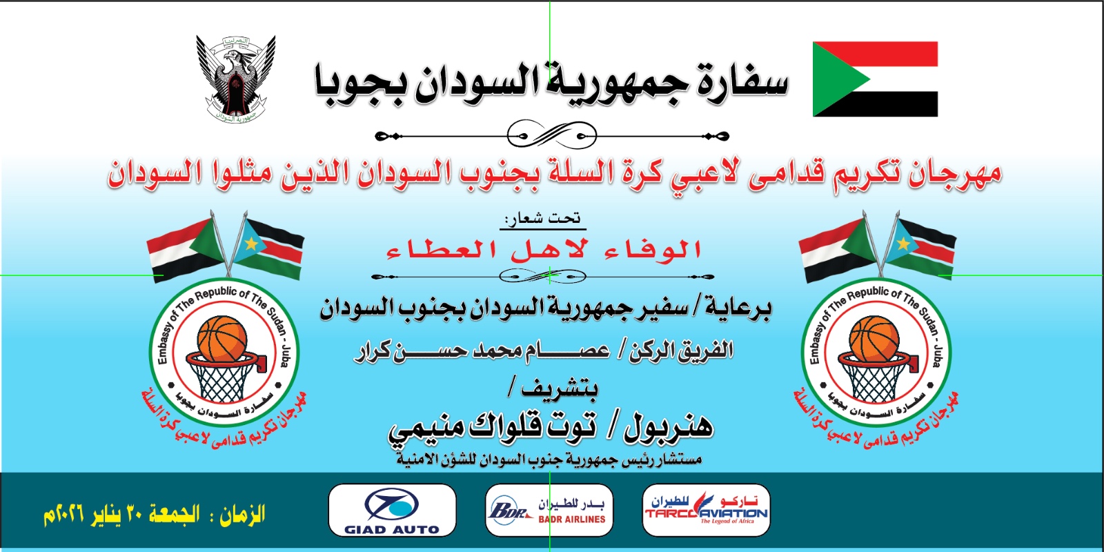 متابعات: النورس نيوز- أقامت سفارة جمهورية السودان في جوبا، برعاية شركة بدر للطيران، مهرجاناً احتفالياً بهيجاً لتكريم قدامى لاعبي كرة السلة الذين مثلوا البلاد بامتياز في مختلف البطولات الإقليمية والدولية وأحرزوا الميداليات باسمه، في لمسة وفاءٍ وتقديرٍ لجهودهم الرياضية، وتعبيراً عن اعتزاز الشعب السوداني بمسيرتهم الرياضية الحافلة.