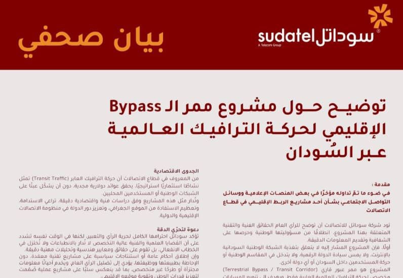 سوداتل توضح تفاصيل مشروع ممر Bypass الإقليمي لحركة الترافيك العالمي عبر السودان