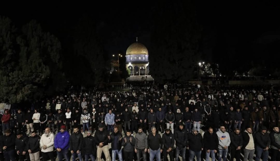 النورس نيوز _ شهد المسجد الأقصى مساء اليوم توافدًا واسعًا للمصلين الذين أدّوا صلاتي العشاء والتراويح ضمن أجواء إيمانية مميزة في ليالي شهر رمضان المبارك، حيث قُدِّر عدد المشاركين بنحو 40 ألف مصلٍّ، رغم القيود والإجراءات المفروضة على الوصول إلى المدينة المقدسة.