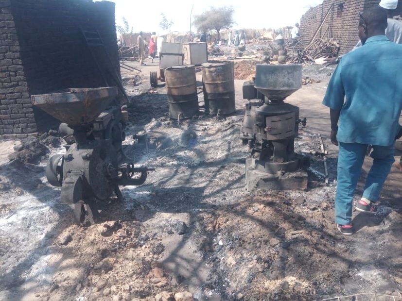 وأوضح أن الخسائر شملت احتراق كميات هائلة من المحاصيل الغذائية، بالإضافة إلى فقدان الممتلكات الأساسية للنازحين.