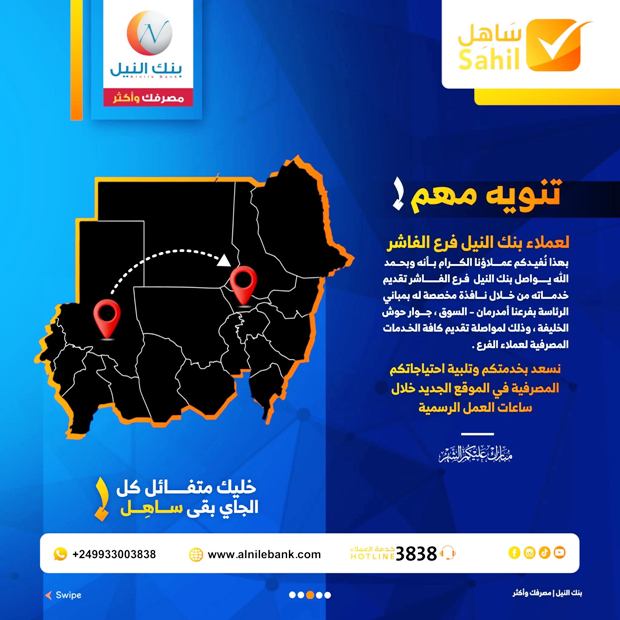 مهم.. لعملاء بنك النيل فرع الفاشر