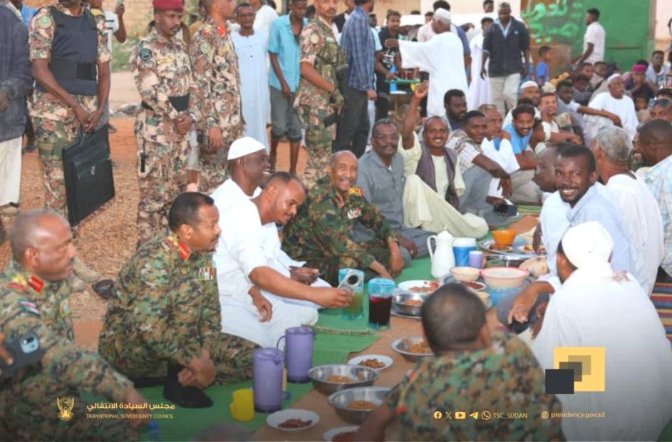 الخرطوم: النورس نيوز- شارك رئيس مجلس السيادة، القائد العام للقوات المسلحة الفريق أول ركن عبد الفتاح البرهان، أهالي منطقة الزاكياب شمال بحري وجبة الإفطار الرمضاني اليوم، في خطوة لافتة تعكس مدى قربه من المواطنين وتلاحم القيادة مع الشعب، وقوبلت بترحاب شعبي كبير.