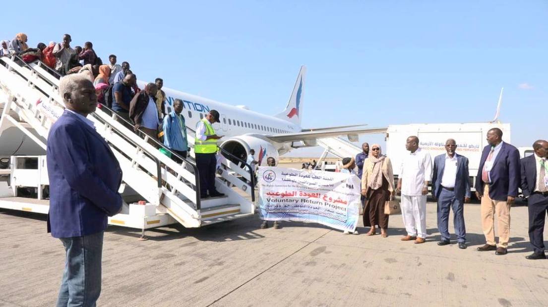 وكان في استقبال الفوج وكيلة وزارة الثقافة والإعلام والسياحة والآثار سمية الهادي والسفير بوزارة الخارجية أونور أحمد، ورئيس اللجنة العليا للعودة الطوعية اللواء م. شرطة عبد الكريم يوسف يعقوب.