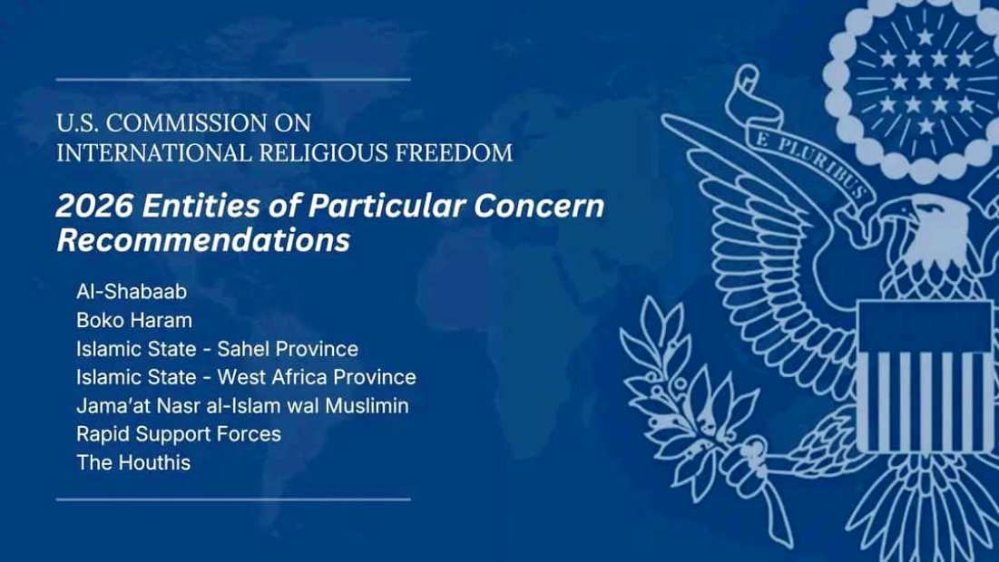 توصي لجنة الولايات المتحدة للحرية الدينية الدولية (USCIRF) وزارة الخارجية بتصنيف أو إعادة تصنيف سبع جهات فاعلة غير حكومية كدول ذات أهمية دينية خاصة، وذلك بناءً على انتهاكاتها الجسيمة للحرية الدينية في عام 2025. وتوصي اللجنة لأول مرة بتصنيف مليشيا الدعم السريع في السودان ككيان يثير قلقاً خاصاً.