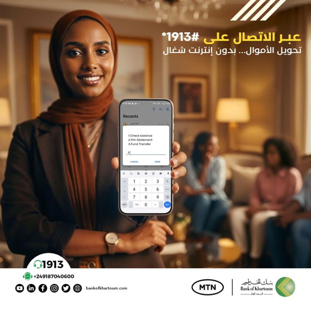 ودعا البنك عملاءه إلى استخدام الرمز *1913# من خلال شريحة MTN، مؤكداً أن هذه الطريقة توفر وسيلة آمنة وسهلة لمتابعة الحسابات وإنجاز المعاملات، بغض النظر عن نوع الهاتف المستخدم أو توفر البيانات.