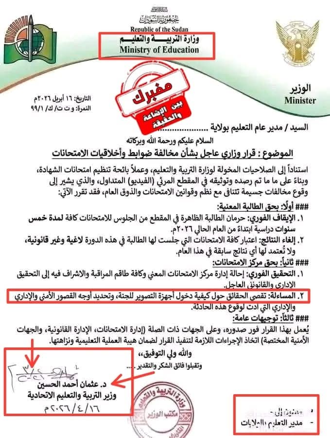 وأوضحت المصادر أن هذه المؤشرات مجتمعة تؤكد أن الوثيقة مزورة، ولا تمت بصلة لأي جهة رسمية.